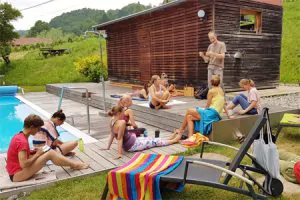 Es bleibt dir genug Freizeit für eine geführte Wanderung in die traumhafte Umgebung, die Natur bei (Schweige-) Spaziergängen zu erleben oder einfach nur im Haus oder beim Swimmingpool mit einem guten Buch auszuspannen, zu plaudern und die Seele baumeln lassen und mit köstlichem biologisch-vegetarischen Essen, Kraft und Energie zu tanken.